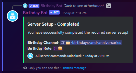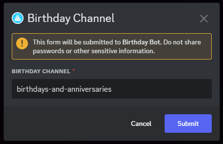 In this guide, we will be using Birthday Bot's interactive setup command.
