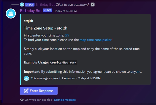 Birthday Bot will now know your time zone and will use this to know what time to celebrate your birthday!